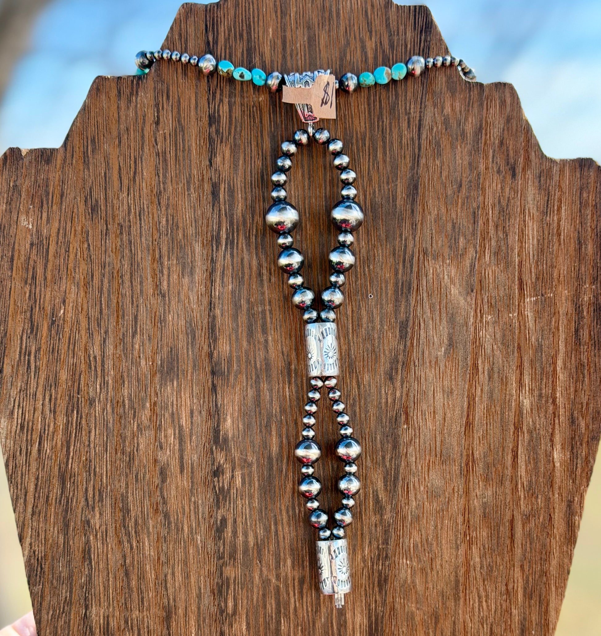 - Sterling Silver Barrels with 5 - 10 mm sterling silver pearls and Sterling Silver Bail