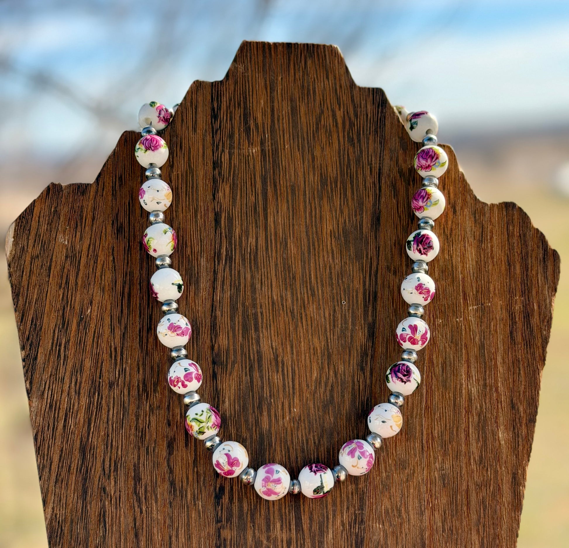 - Floral Ceramic with 7 MM Sterling Silver Pearls