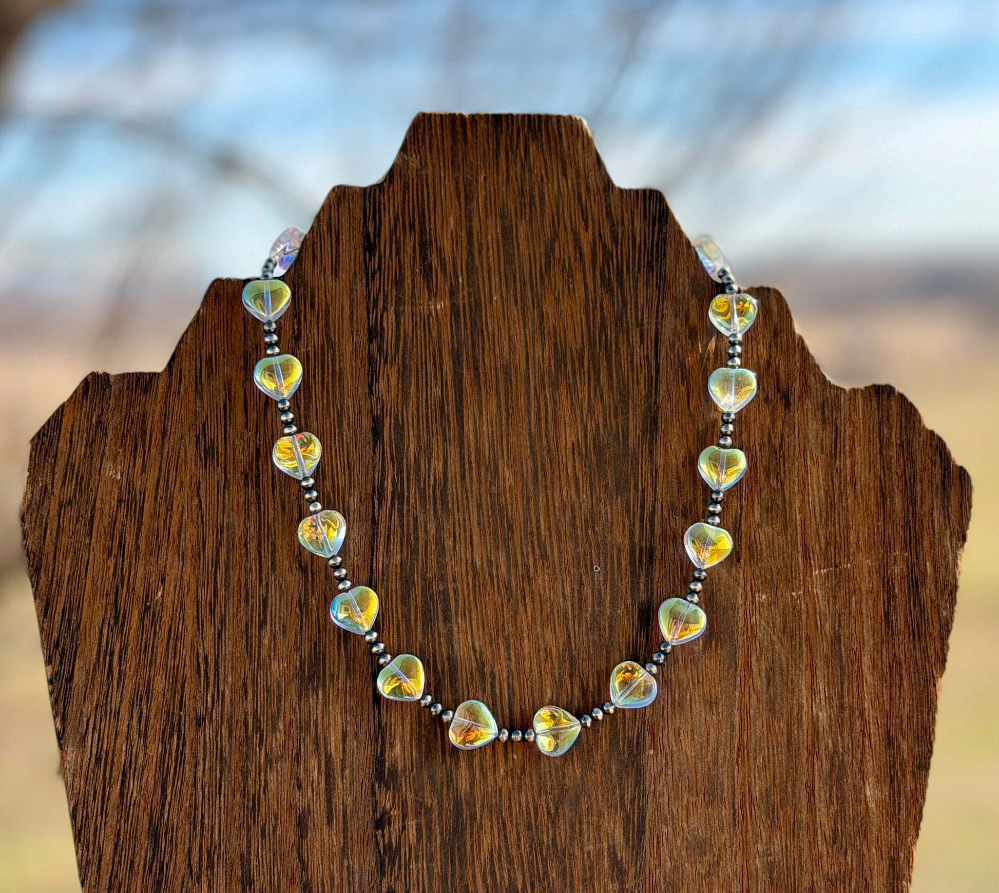 - Imitation Opalite with 3 MM Sterling Silver Pearls