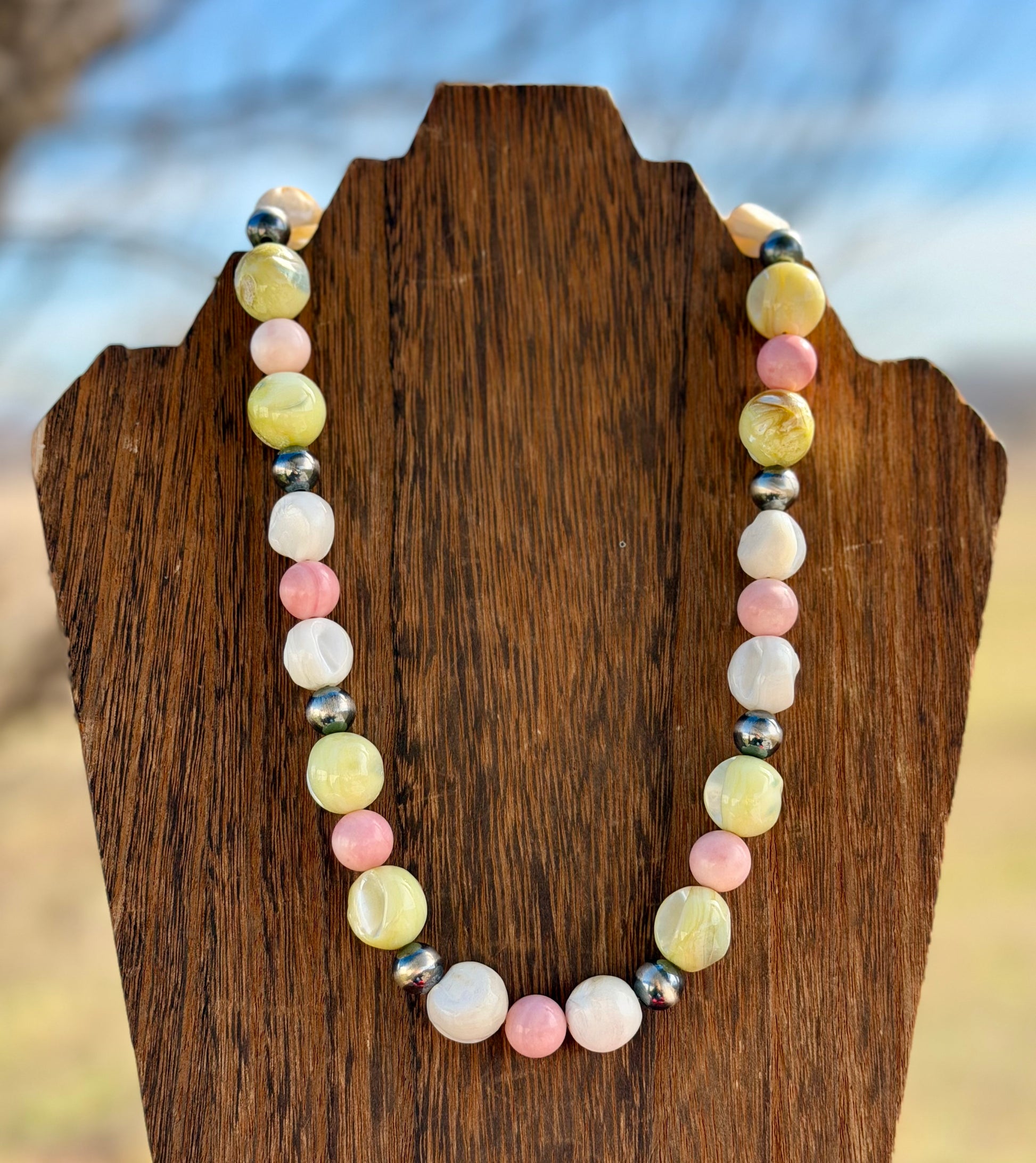 - Mother of Pearl and Pink Conch with 10 MM Sterling Silver Pearls