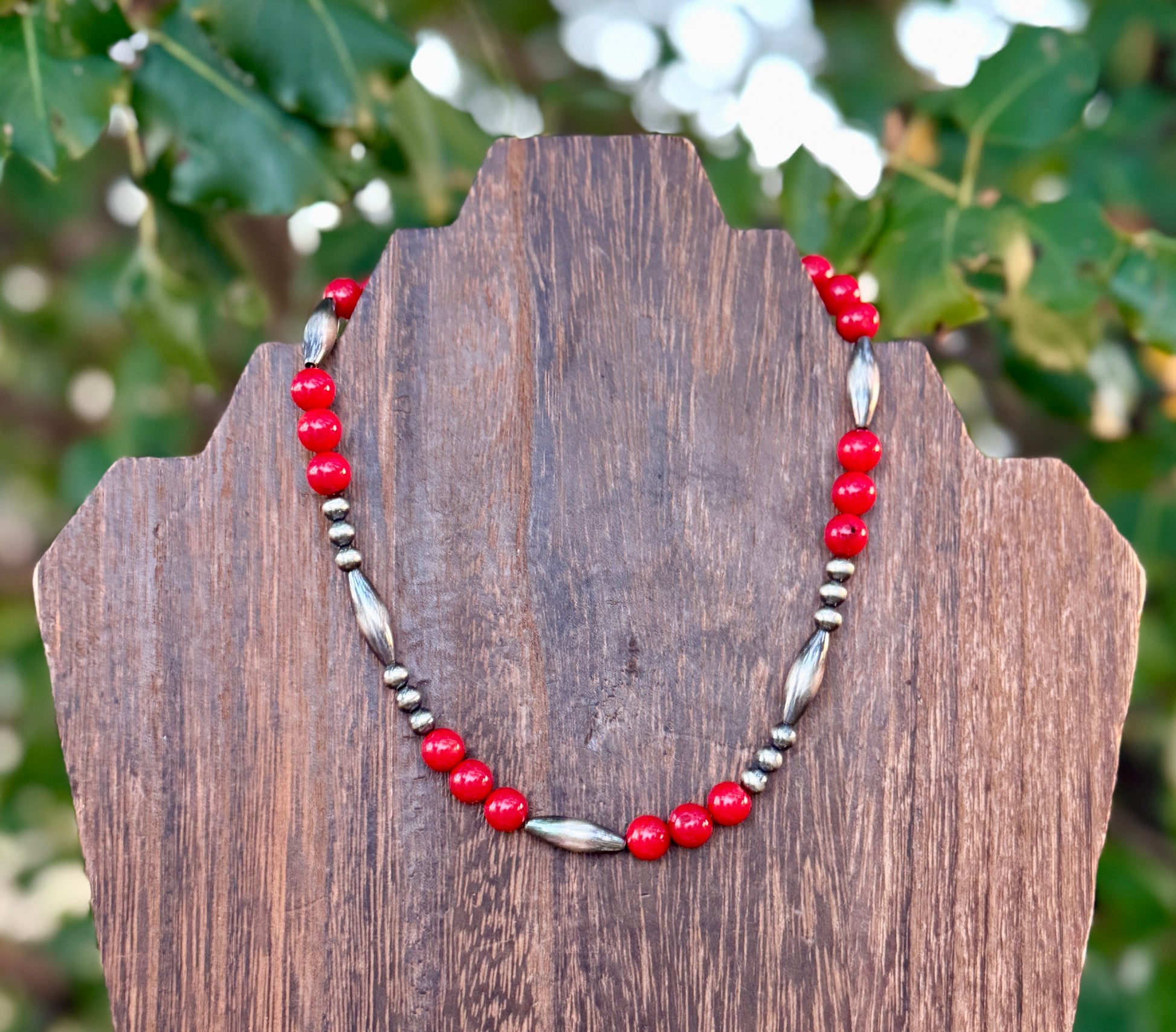 - Red Corral with 5 MM Sterling Silver Pearls and Sterling Silver Torpedos