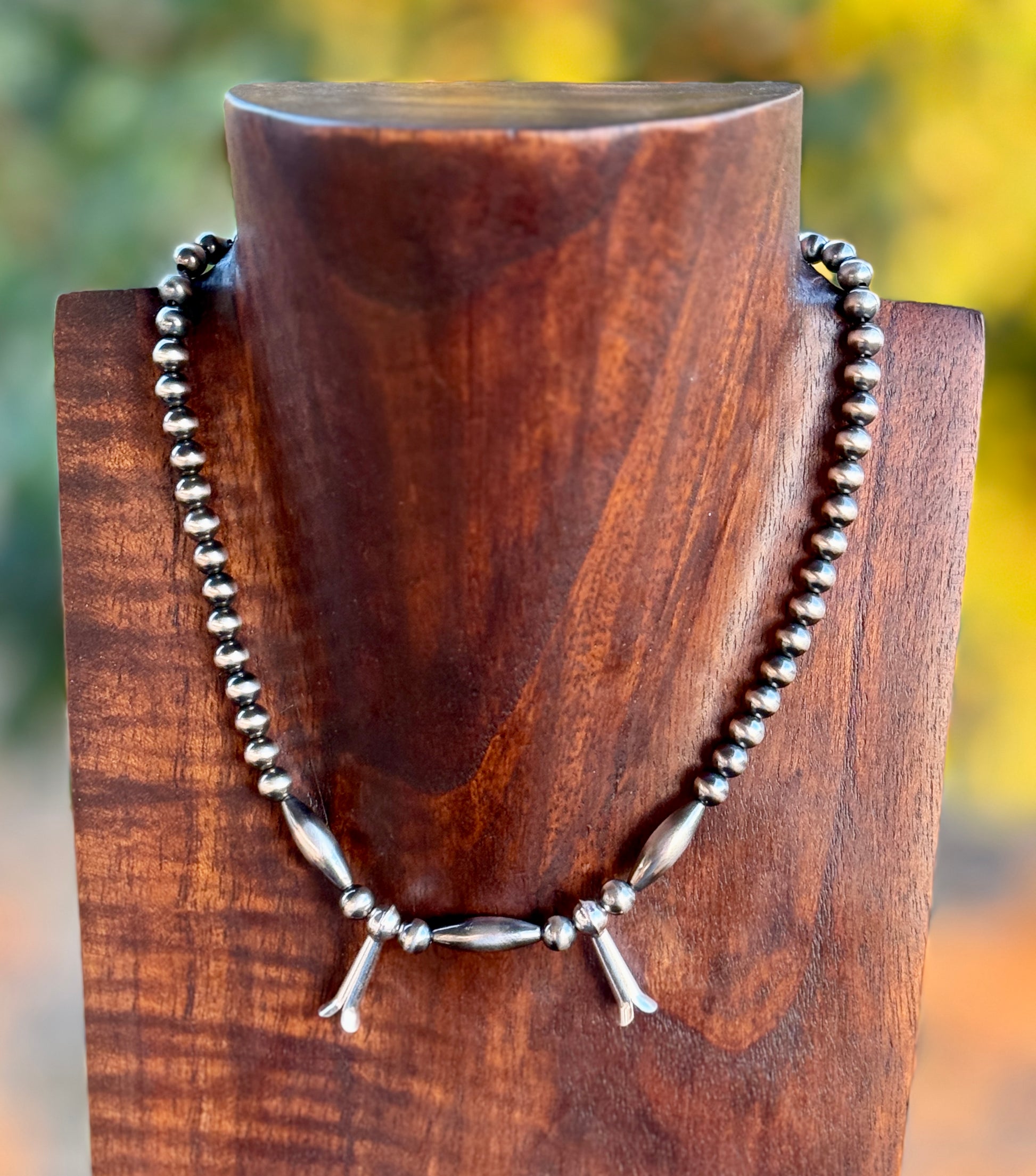 - 6 MM Sterling Silver Pearls with Sterling Silver Torpedos and Sterling Silver Blossoms