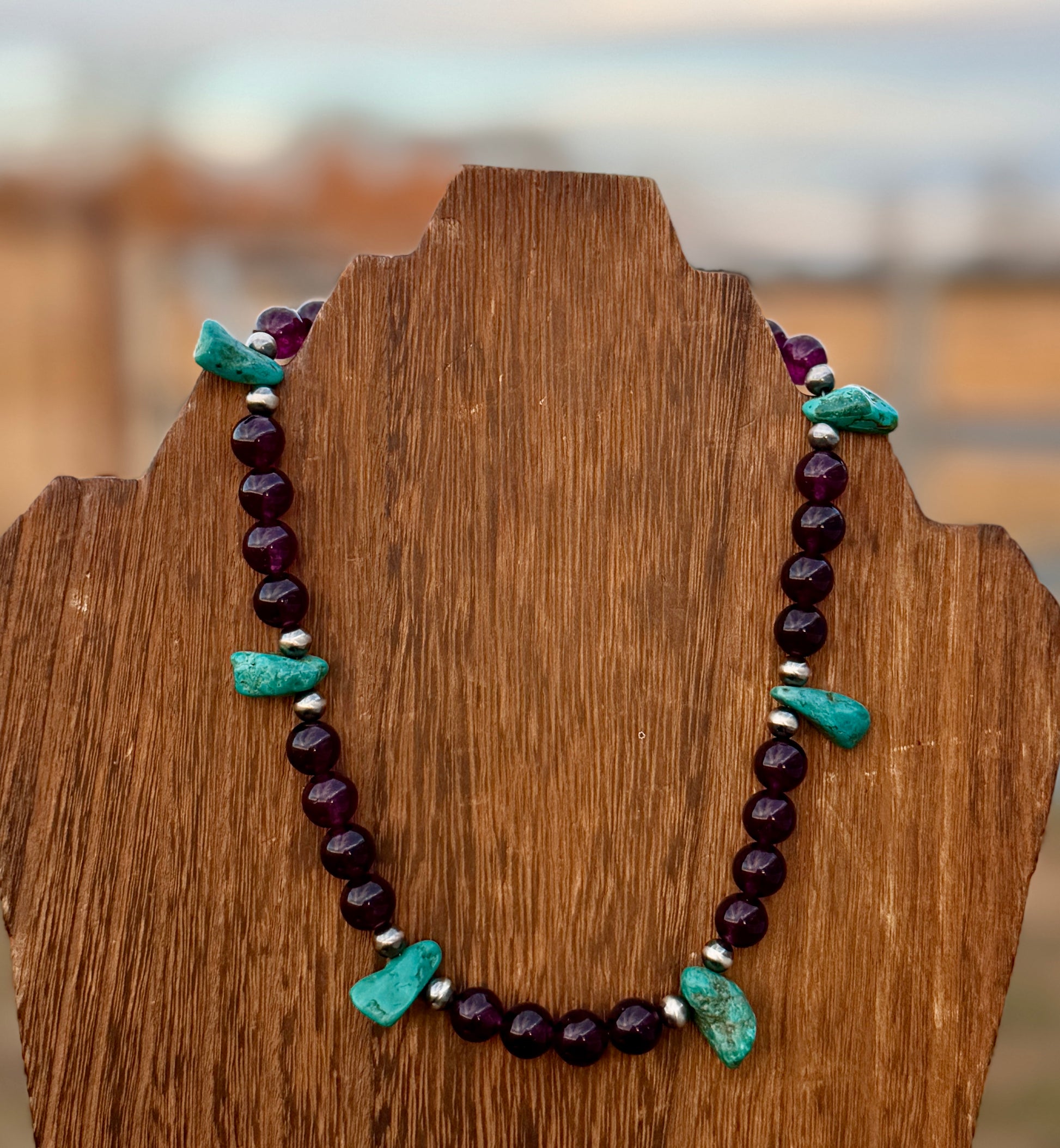- Turquoise and Purple Jade Gemstone with 5 MM Sterling Silver Pearls