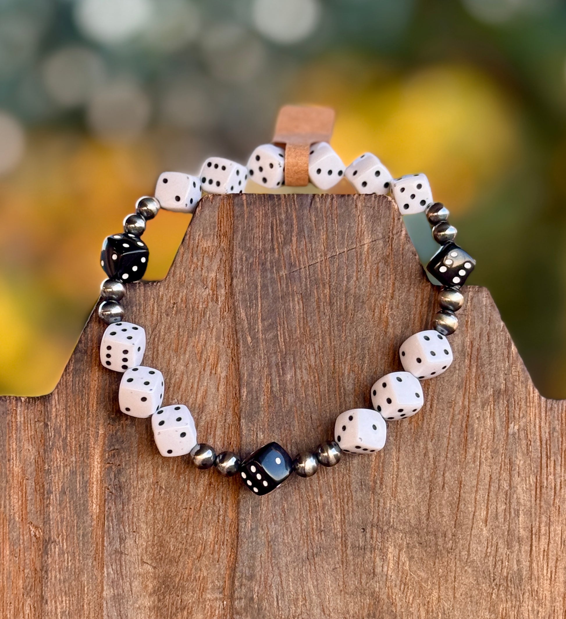 - Dice (plastic beads) with 5 mm sterling silver pearls
